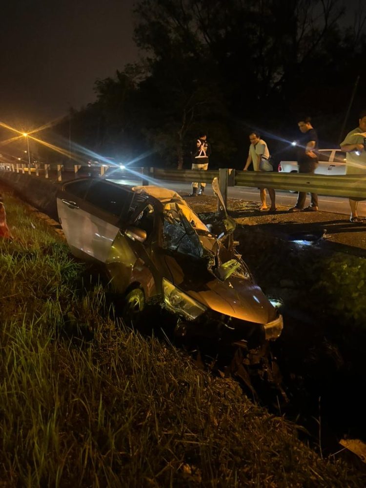 Setibanya di lokasi kira-kira 4.32 pagi, pasukan bomba mendapati kemalangan melibatkan sebuah Perodua Bezza yang terbabas di bahu jalan.