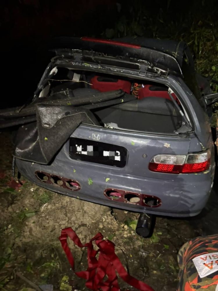 “Kemalangan melibatkan dua mangsa lelaki dewasa yang terhumban keluar dari kenderaan akibat impak kejadian.