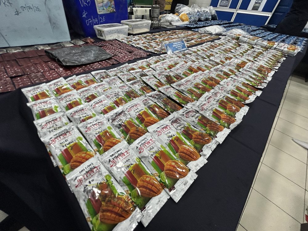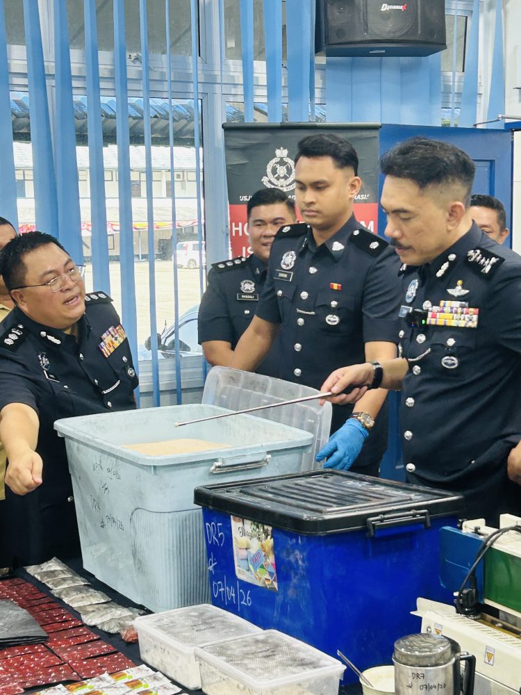 “Hasil serbuan, polis merampas pelbagai jenis dadah termasuk MDMA seberat 107,524 gram, ketamin (1,283 gram), pil Erimin 5 (180 gram), pil ekstasi (102 gram) dan syabu (28 gram).