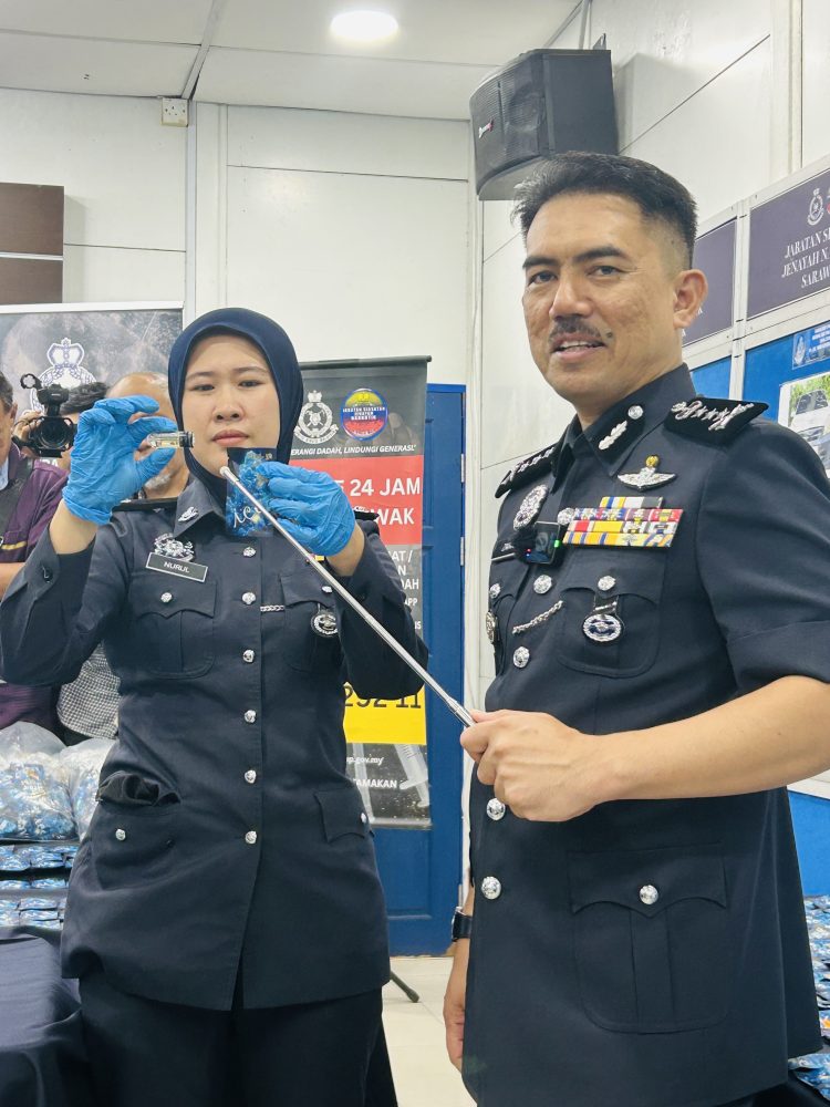 Menurut beliau, dalam operasi pertama pada 7 April 2026, JSJN Bukit Aman dengan kerjasama JSJN Ibu Pejabat Polis Kontinjen (IPK) Sarawak menyerbu sebuah inap desa di Santubong dan menahan seorang lelaki serta seorang wanita tempatan berumur 41 dan 31 tahun.