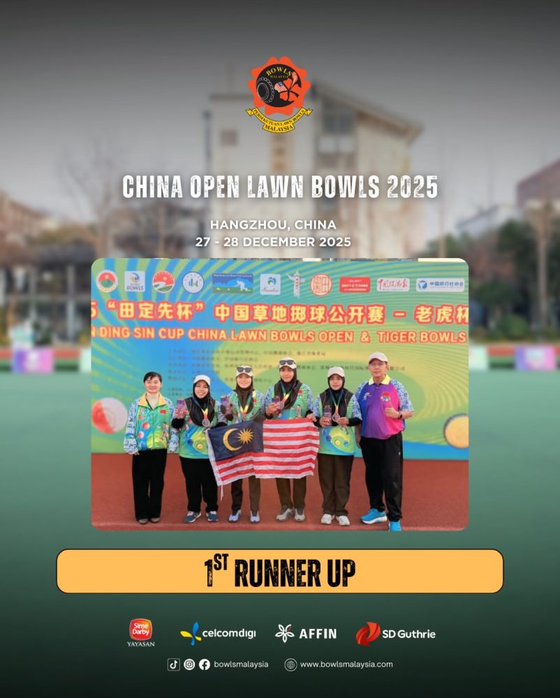 Pada Kejohanan Boling Padang Terbuka China 2025 yang berakhir semalam, Malaysia memenangi pingat emas Men’s Fours selepas mengatasi pasukan tuan rumah Zhu Hai sementara skuad wanita negara berjaya ke final Women’s Fours sebelum tewas kepada Zhong Ti Time sekali gus membawa pulang perak.