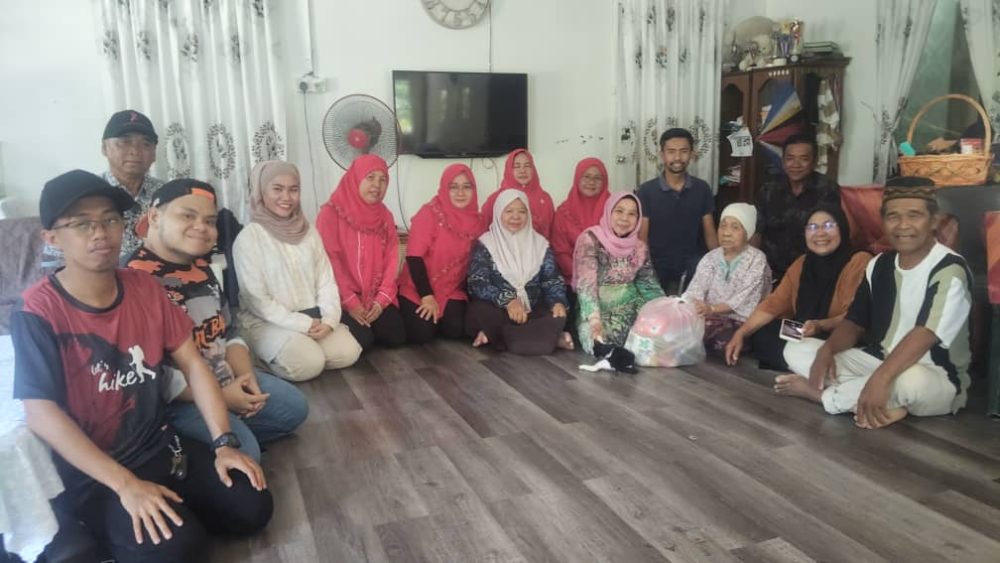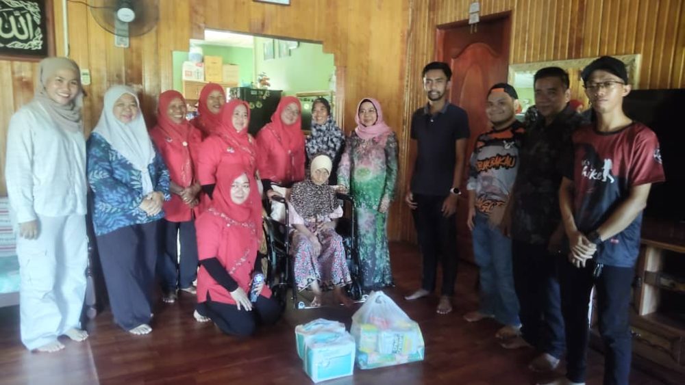 KUNJUNG… Datuk Rosey Yunus bersama rombongan ketika berkunjung ke kediaman Sibeng Brahim, 95, di Kampung Padang Kelulit semalam.