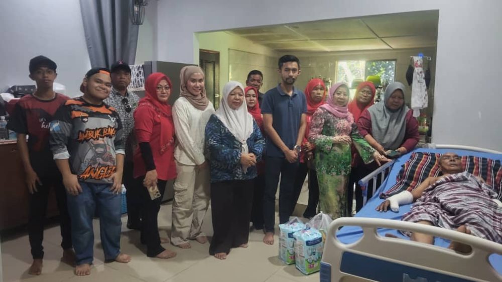 LAWAT… Datuk Rosey Yunus ketika melawat Mudin Isa di Kampung Padang yang terlibat dalam satu kemalangan jalan raya September lepas.