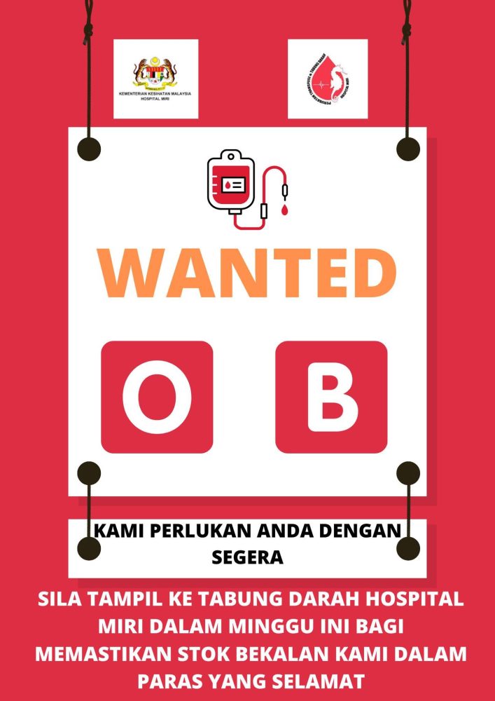 Tabung Darah Hospital Miri dalam satu makluman menerusi Facebook hari ini memaklumkan keadaan itu membimbangkan dan memerlukan sokongan segera daripada orang ramai bagi memastikan keperluan pesakit dapat dipenuhi.