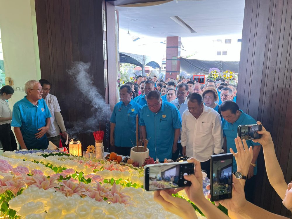 TIONG…Bersama rombongan memberikan penghormatan terakhir kepada mendiang Lau, petang ini.