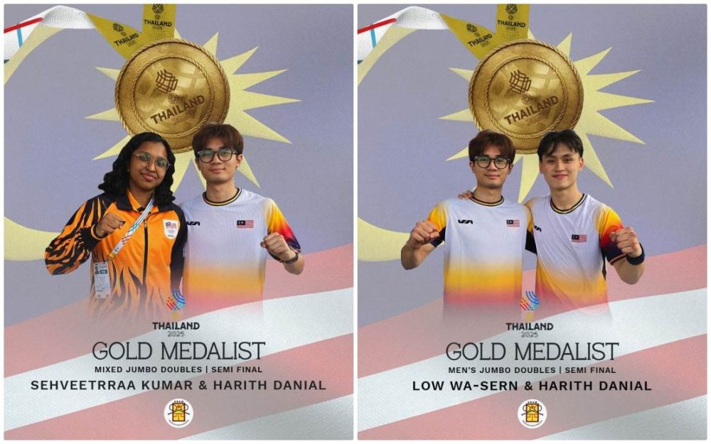 BANGKOK: Pasukan skuasy negara menepati ramalan apabila meraih dua pingat emas menerusi acara jumbo beregu lelaki dan campuran Sukan SEA Thailand 2025, berlangsung di Kolej Vajiravudh di sini hari ini.