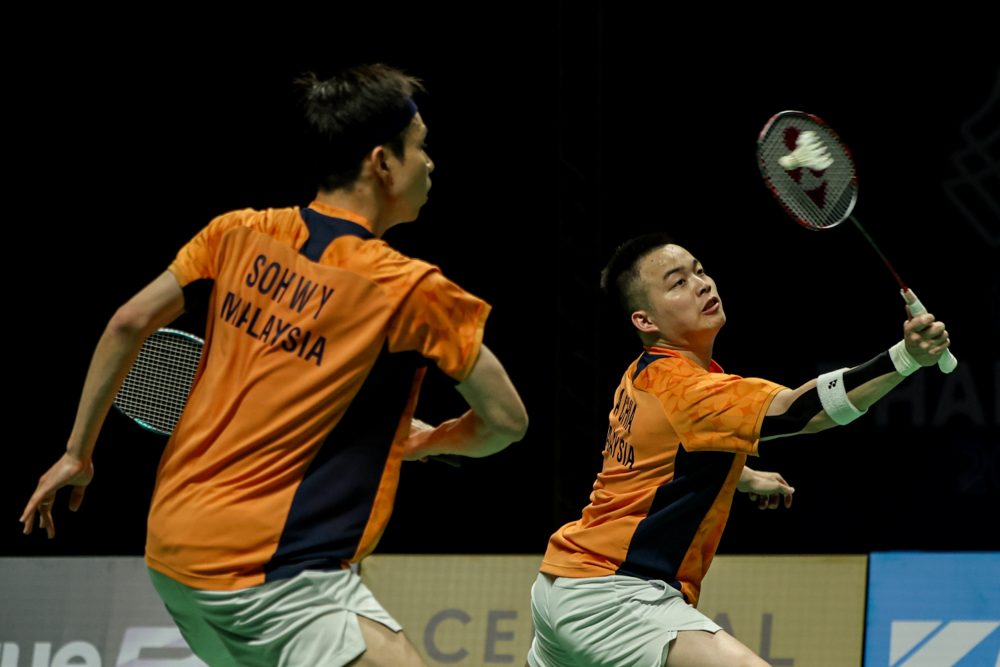 Kedudukan Malaysia bertambah sukar dalam perlawanan kedua apabila bekas juara dunia 2022, gandingan Aaron Chia-Soh Wooi Yik gagal menonjolkan kehebatan apabila tewas mudah 12-21, 12-21 kepada pasangan nombor lapan dunia Sabar Karyaman Gutama-Moh Reza Pahlevi Isfahani dalam masa 34 minit.
