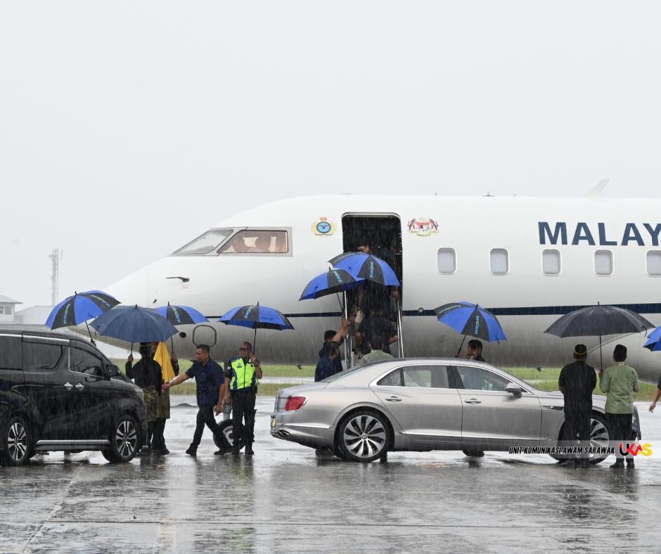 Ketibaan Baginda berdua sekitar 11.00 pagi di Terminal Orang Kenamaan di Lapangan Terbang Antarabangsa Kuching (LTAK) disambut oleh Premier Sarawak, Datuk Patinggi Tan Sri Abang Johari Tun Openg serta dif kenamaan lain.