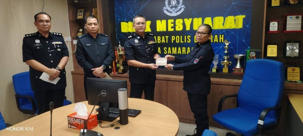 KOTA SAMARAHAN: Satu majlis ringkas telah diadakan di Bilik Mesyuarat Ketua Polis Daerah Kota Samarahan bagi menyampaikan sumbangan kebajikan kepada anggota polis dan keluarga masing-masing, pagi tadi.