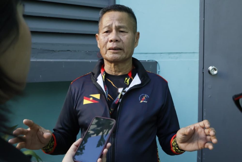 KUCHING: Pemain badminton Sarawak, Syafiq Phua Fadhlee Phua, menghadiahkan pingat emas tunggal lelaki kepada kontinjen tuan rumah selepas menewaskan wakil Wilayah Persekutuan, Aravindakumara A/L Rajamurthi.