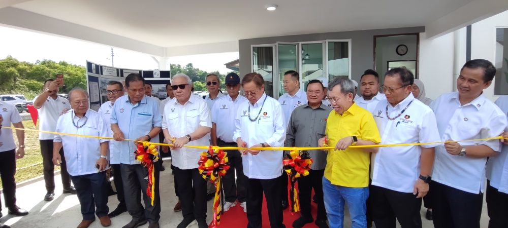 KESELESAAN RAKYAT… (depan dari kiri) Premier Sarawak, Datuk Patinggi Tan Sri Abang Johari Tun Openg bersama tetamu kenamaan lain memotong reben perasmian RMM Ranggau Valley.