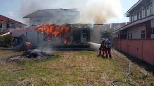 MUSNAH… Sebuah rumah kosong musnah dalam kebakaran dalam kejadian di di Simpang Dua, Kampung Pasir, Lutong di...