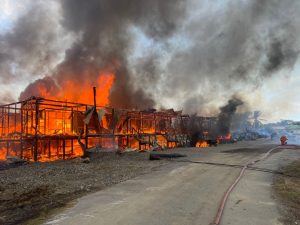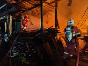 KUCHING: Sebuah kilang kayu di Jalan Taman Kota Padawan, Batu 11, musnah kira-kira 70 peratus selepas terbakar...