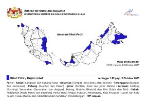 Ribut petir, hujan lebat dan angin kencang dijangka di negeri Perlis • Kedah (Langkawi dan Kubang Pasu)...