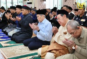 KOTA SAMARAHAN: Yang di-Pertua Negeri, Tun Pehin Sri Wan Junaidi Tuanku Jaafar menunaikan solat Jumaat di Pusat...