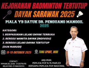 MIRI: Kejohanan Badminton Tertutup Dayak Sarawak 2025 yang bakal berlangsung pada 18 hingga 19 Oktober di Dewan...