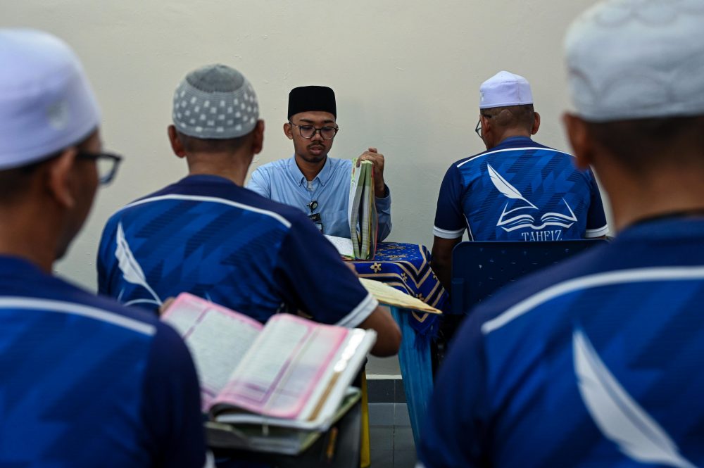 GURU Tahfiz Penjara Kajang, Muhammad Hafiey Sabri ketika sesi bersama penghuni penjara di Pusat Pemantapan Kerohanian (PPIC) Penjara Kajang baru-baru ini. Program Tahfiz Khairul Ummah di bawah kendalian Jabatan Penjara Malaysia bukan sekadar menekankan hafazan Al-Quran, tetapi juga membentuk keseimbangan antara ukhrawi dan duniawi melalui latihan vokasional dan pendidikan kerohanian. Foto BERNAMA