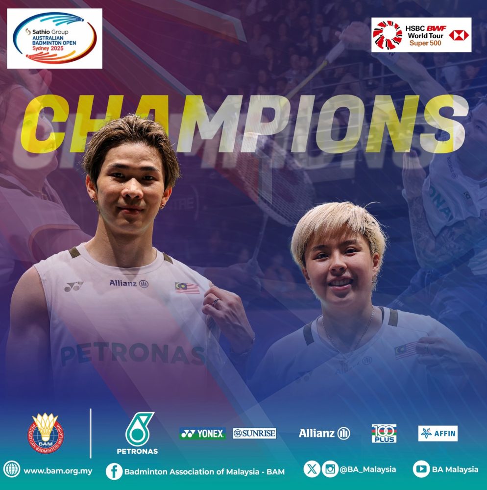 KUALA LUMPUR: Beregu campuran utama negara Chen Tang Jie-Toh Ee Wei mengesahkan kejuaraan kedua musim ini selepas muncul juara Kejohanan Badminton Terbuka Australia 2025 di Sydney hari ini.
