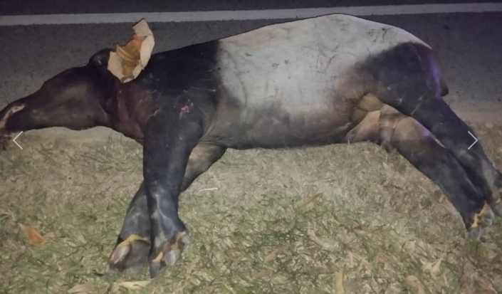Pada 24 Januari lepas seekor tapir seberat 200 kilogram mati dirempuh sebuah motosikal di Kilometer 320.5 Lebuh Raya Pantai Timur 2 (LPT2) selepas susur keluar Kerteh, Kemaman pada 1 pagi.
