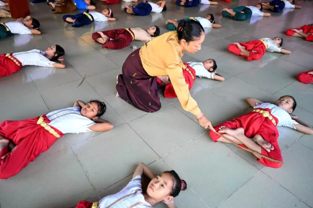 Latihan tarian ini memerlukan kesabaran tinggi, termasuk mengira hingga 100 untuk membengkokkan jari dengan betul.