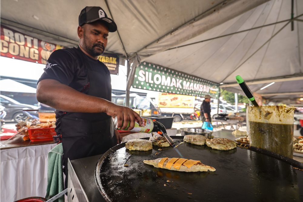 KREATIVITI seorang peniaga di Bazar Ramadan Stadium Tuanku Abdul Rahman, Paroi mencuri perhatian apabila roti pocong dan martabak jualannya kembali menjadi tarikan pengunjung tahun ini. Foto BERNAMA
