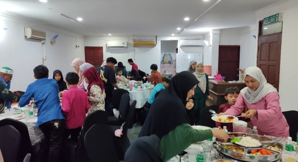 IFTAR…Para asnaf dan jemputan kelihatan menjamu selera bersama sahabat dan keluarga.