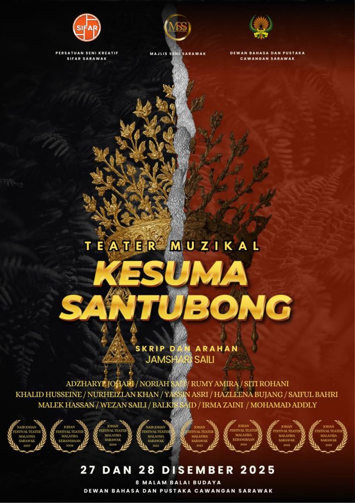 KUCHING: Persatuan Seni Kreatif Sifar Sarawak (SIFAR) akan mempersembahkan pementasan Teater Muzikal Kesuma Santubong, sebuah karya menjanjikan pengembaraan emosi dan seni budaya Sarawak yang kaya.