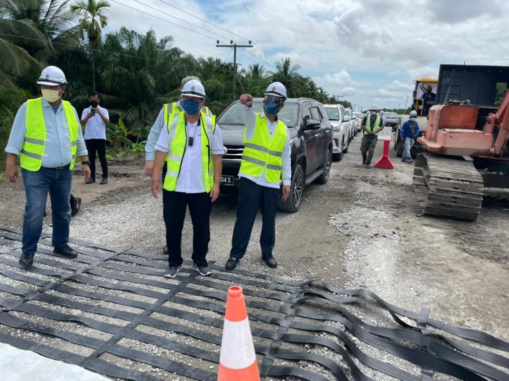 Kerja-kerja semasa di jalan tersebut masih dalam persiapan dan peletakan geotekstil sub-pangkalan. Setelah pengujian telah dilakukan dan permukaan penamat meterai utama dilakukan, pembalut akhir diikuti dengan pembalut permukaan dilakukan sesuai dengan spesifikasi.