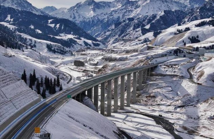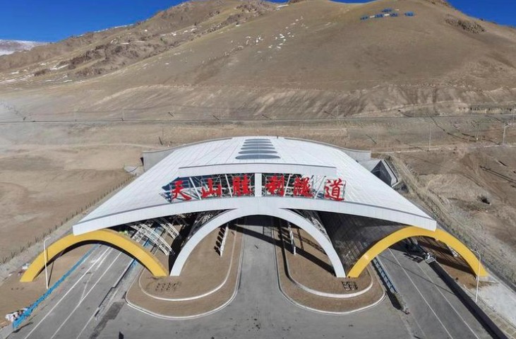 Merentasi Pergunungan Tianshan tengah di Wilayah Autonomi Uygur Xinjiang di barat laut China, terowong itu mengurangkan masa perjalanan yang dahulunya mengambil masa beberapa jam kepada hanya 20 minit.