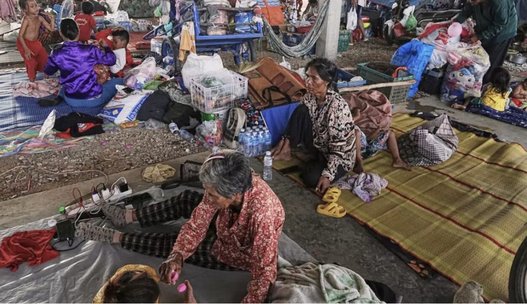 Penduduk yang dipindahkan berlindung di pekan wilayah Banteay Meanchey, Kemboja pada 12 Disember 2025 selepas melarikan diri akibat pertempuran antara Thailand dan Kemboja berhubung tuntutan wilayah. Foto AFP