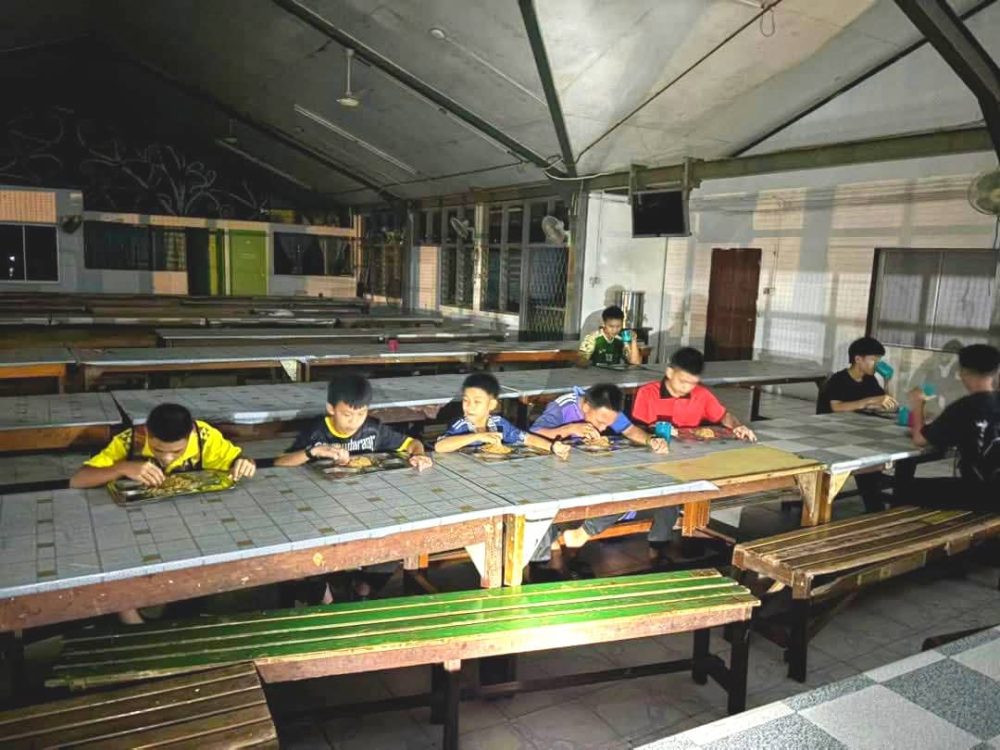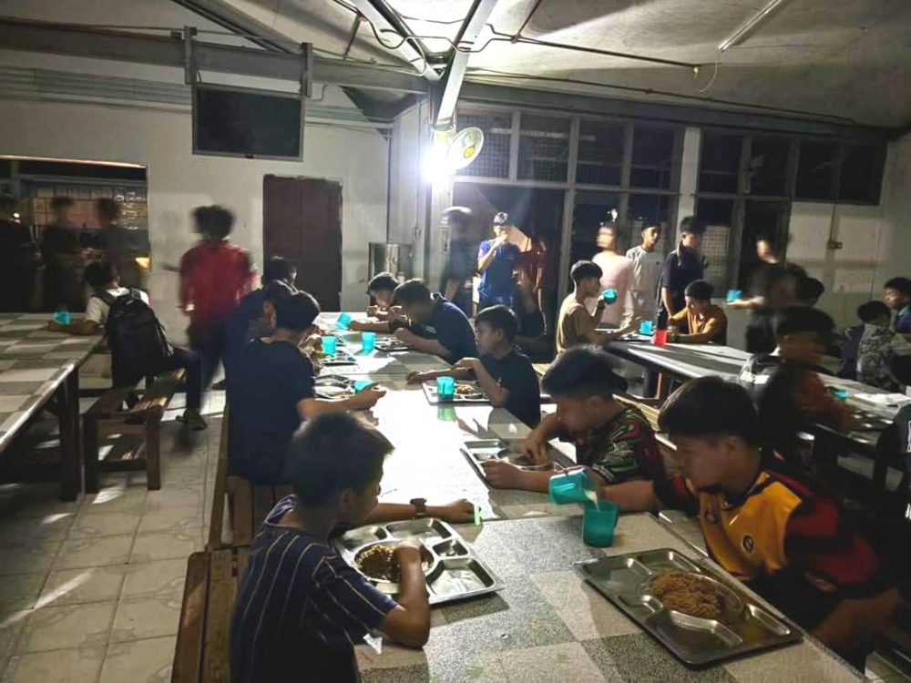 SUASANA ketika pelajar menikmati juadah makan malam.