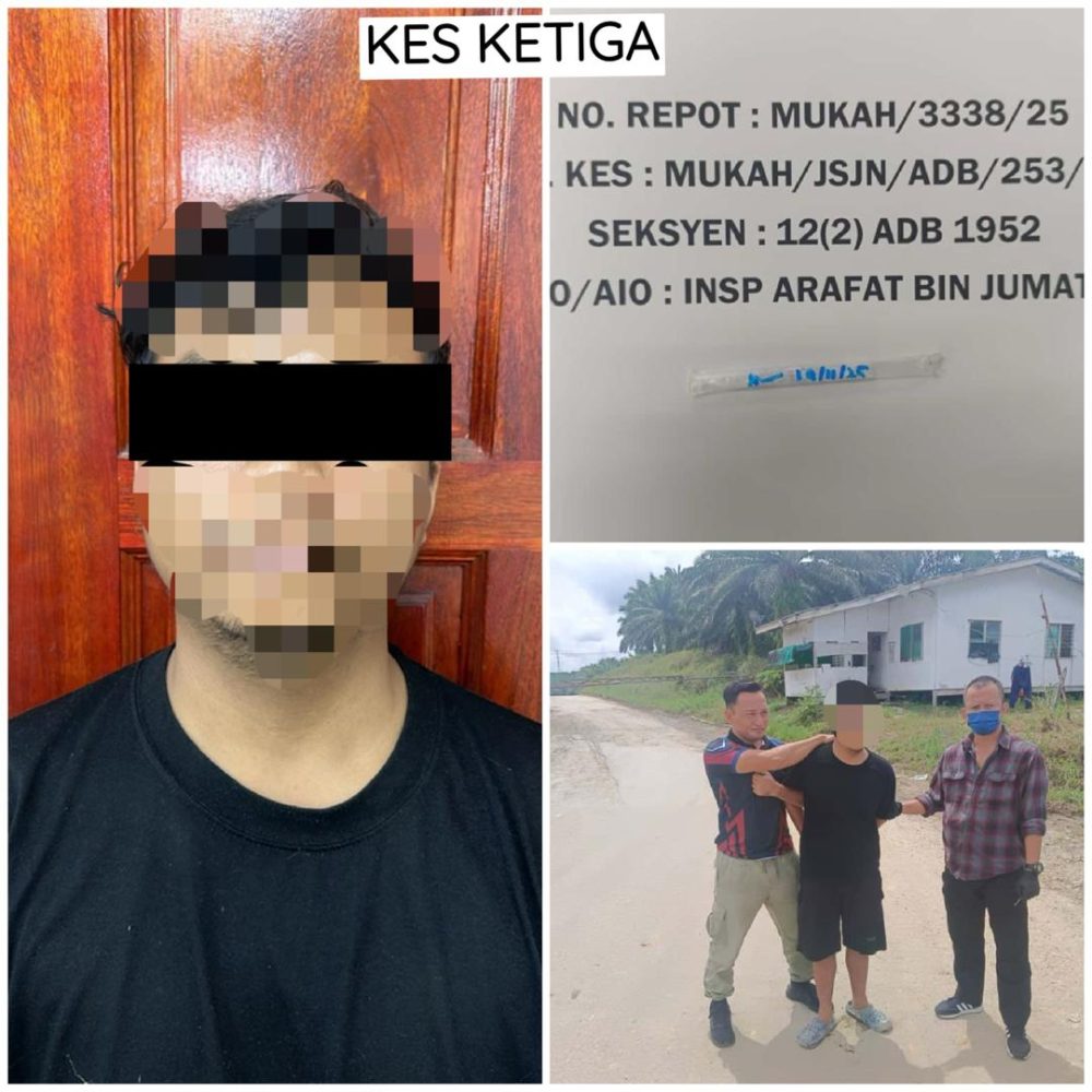 Dalam kes kedua, katanya, merupakan tangkapan seorang lelaki warga tempatan berumur 26 tahun di simpang tiga jalan ladang sawit Jalan Mukah-Selangau.