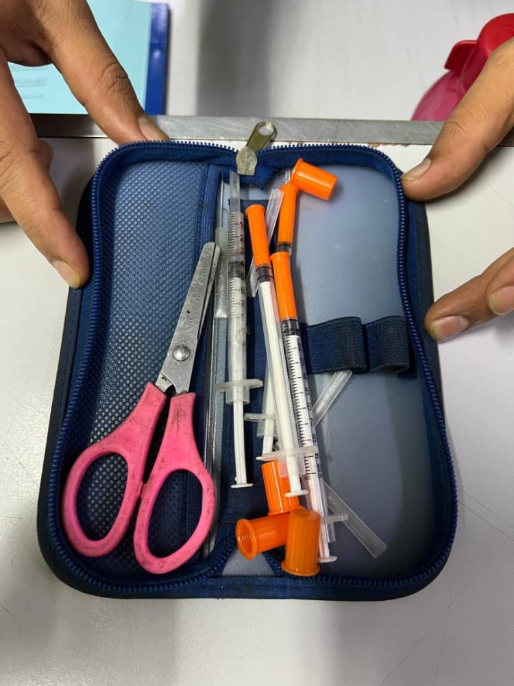 Hasil pemeriksaan menemui dua lelaki dewasa disyaki penagih dadah bersama peralatan digunakan untuk menagih.