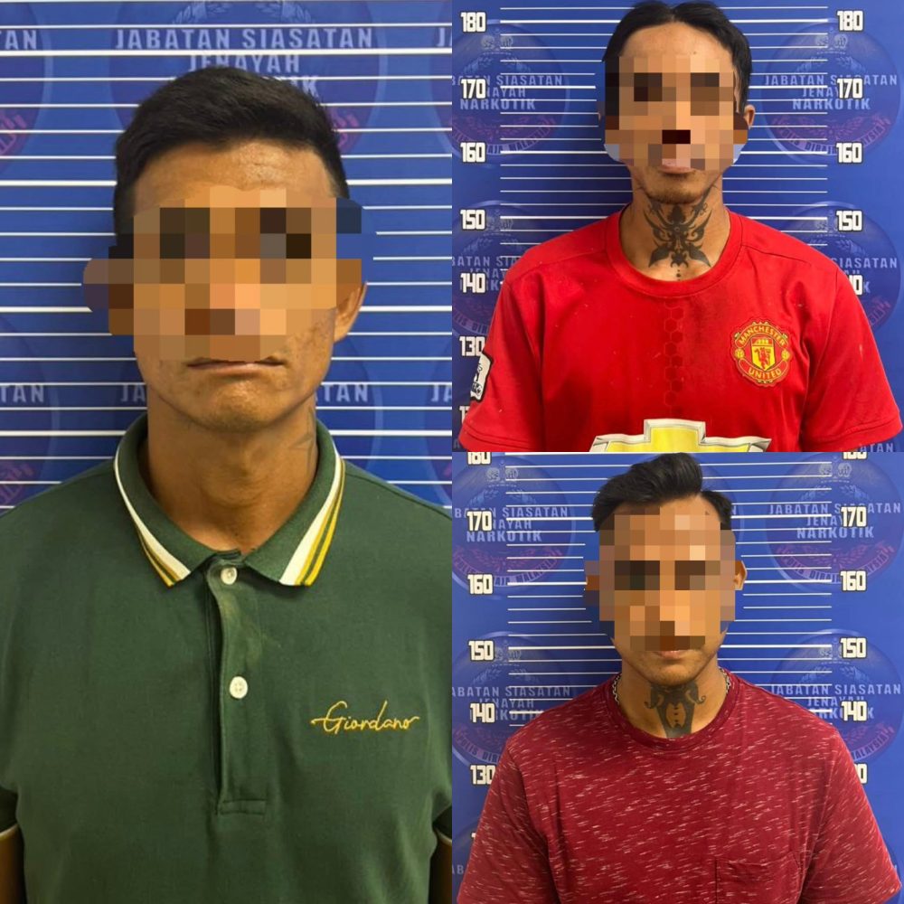 LUBOK ANTU: Bahagian Siasatan Jenayah Narkotik Ibu Pejabat Polis Daerah (IPD) Lubok Antu berjaya menahan tiga lelaki tempatan berusia dalam lingkungan awal 20-an hingga 30-an yang disyaki terlibat dalam kegiatan penyalahgunaan dadah, semalam.