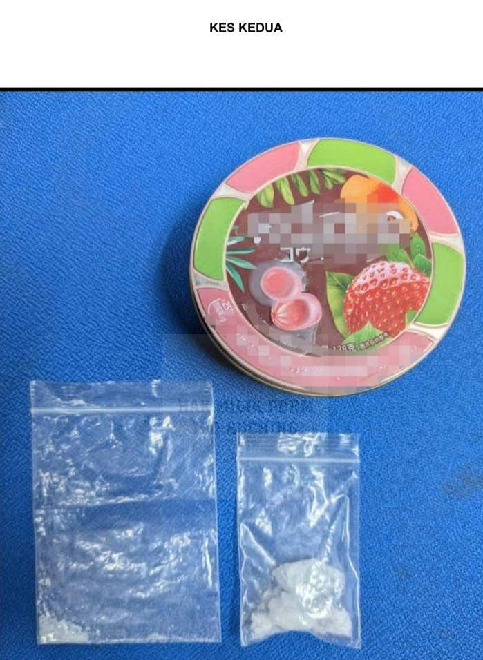 Polis merampas 248.10 gram serbuk campuran dadah disyaki MDMA bernilai RM3,200. Ujian saringan awal air kencing suspek didapati negatif dan semakan rekod menunjukkan tiada rekod jenayah lampau.