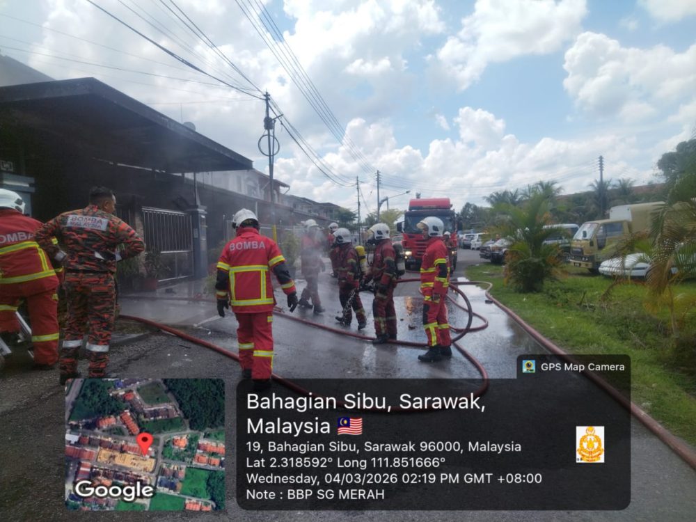 SIBU: Tiga rumah teres dua tingkat di Jalan Ling Kai Cheng, di sini telah dilaporkan terbakar, petang tadi.
