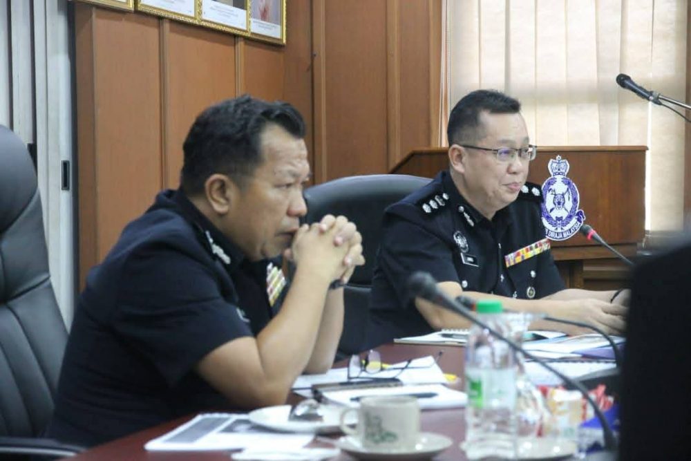 DCP Saifullizan Ishak dan Ketua Jabatan Siasatan Jenayah Sarawak, SAC Lim San Aik, semasa mesyuarat berlangsung.