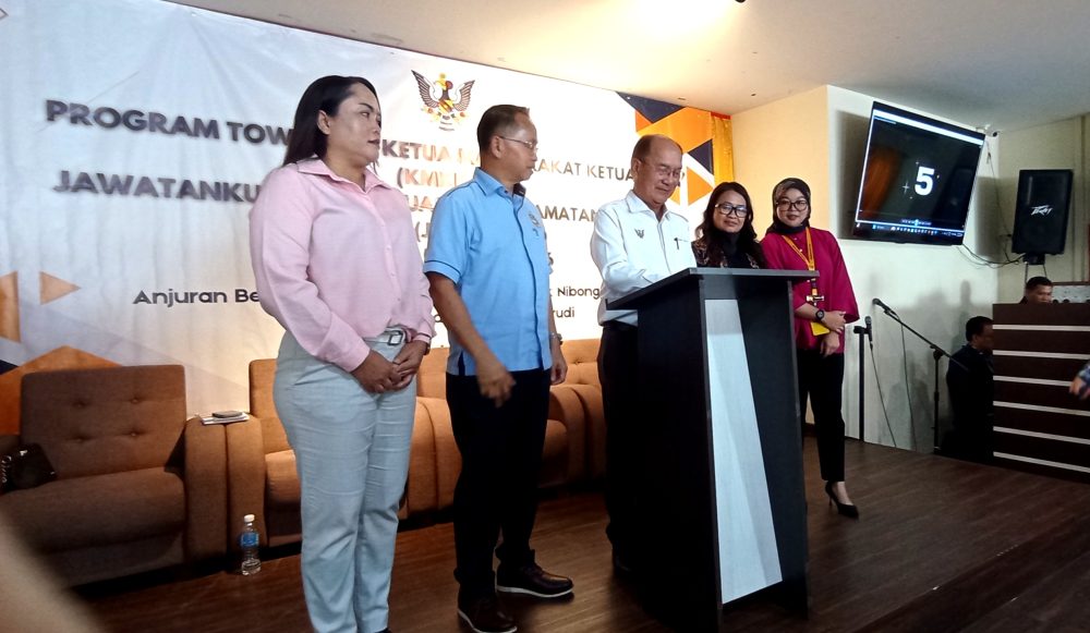 GIMIK…Datuk Gerawat Gala menyempurnakan perasmian Program Townhall bersama KMKK dan JKKK. Foto Jiku Juguong