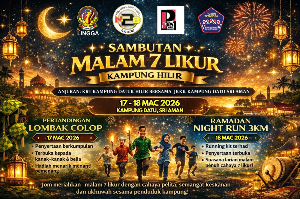 SIMANGGANG: Tradisi unik berlari sambil membawa obor atau dikenali sebagai ‘lombak colop’ bakal memeriahkan suasana Ramadan di sini apabila Kawasan Rukun Tetangga (KRT) Kampung Datuk Hilir Simanggang melalui KRT Jiran Muda menganjurkan Pertandingan Lombak Colop 2026 pada malam 17 Mac ini.