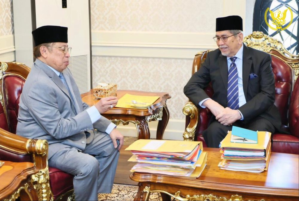 PETRA JAYA: Yang di-Pertua Negeri, Tun Pehin Sri Wan Junaidi Tuanku Jaafar, telah mengadakan Perjumpaan Pramajlis Mesyuarat Kerajaan Negeri bersama Premier Sarawak, Datuk Patinggi Tan Sri Abang Johari Tun Openg di Astana Negeri, hari ini.