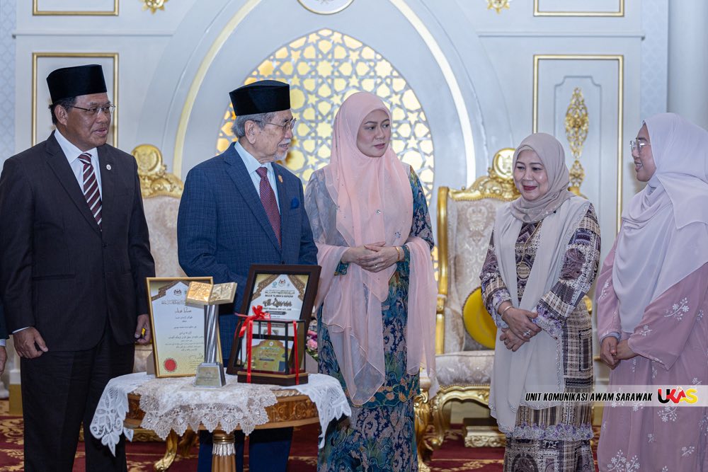 PETRA JAYA: Qariah dari Sarawak, Nur Syakura Mohamad Musa, yang dinobatkan sebagai johan Majlis Tilawah dan Hafazan al-Quran Peringkat Kebangsaan 1447H/2026M, mengadakan kunjungan hormat ke atas Yang di-Pertua Negeri, Tun Pehin Sri Wan Junaidi Tuanku Jaafar di Astana Negeri, di sini hari ini.