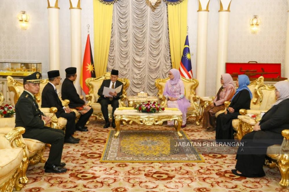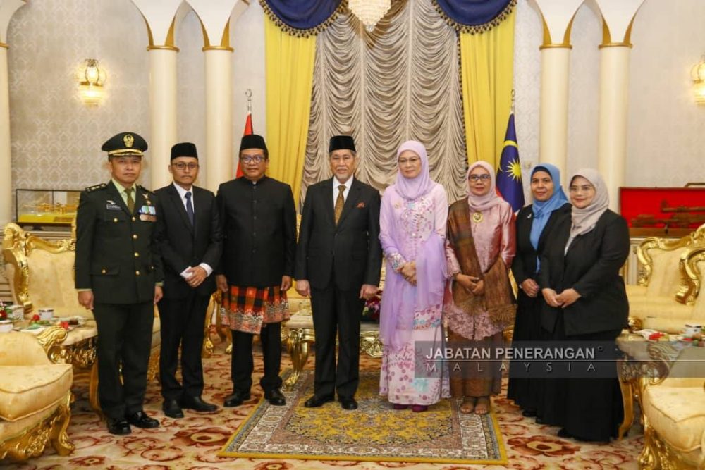 PETRA JAYA: Yang di-Pertua Negeri, Tun Pehin Sri Wan Junaidi Tuanku Jaafar dan isteri, Toh Puan Datuk Patinggi Fauziah Mohd Sanusi, hari ini menerima kunjungan hormat Konsul Jeneral Republik Indonesia di Sarawak, Dr. Abdullah Zulkifli, di Astana Negeri Sarawak.
