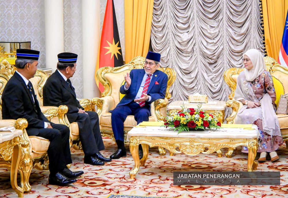 PETRA JAYA: Yang di-Pertua Negeri, Tun Pehin Sri Wan Junaidi Tuanku Jaafar dan isteri, Toh Puan Datuk Patinggi Fauziah Mohd Sanusi, hari ini telah menerima kunjungan hormat daripada Persatuan Pegawai-Pegawai Kanan Polis Bersara Malaysia (RESPA) di Astana Negeri.