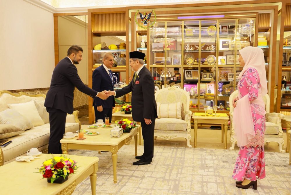 TUN Wan Junaidi menerima kunjungan hormat daripada Pesuruhjaya Tinggi Republik Islam Pakistan ke Malaysia, H.E. Syed Ahsan Raza Shah bertempat di kediaman rasmi, Petra Jaya, hari ini. Foto Astana Negeri Sarawak