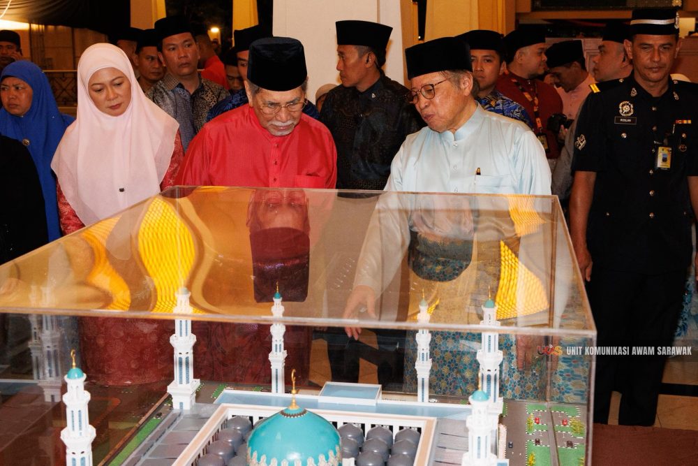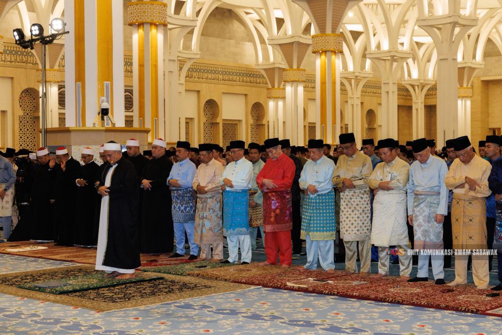 KUCHING: Yang di-Pertua Negeri, Tun Pehin Sri Wan Junaidi Tuanku Jaafar bersama isteri, Toh Puan Datuk Patinggi Fauziah Mohd Sanusi menghadiri Majlis Kesyukuran sempena sambutan Hari Lahir Rasmi Yang di-Pertua Negeri Sarawak ke-79 di Masjid Jamek di sini, malam ini.