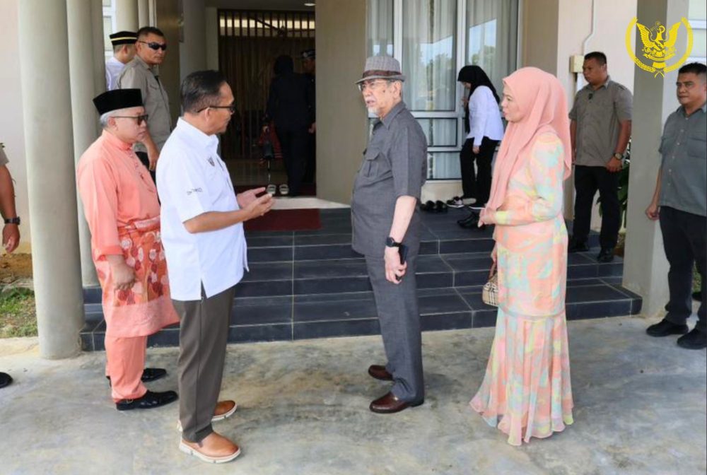 TUN Wan Junaidi dan Toh Puan Fauziah singgah sebentar ke Pusat Latihan SALCRA Bajo di Lundu, hari ini. Foto Astana Negeri Sarawak