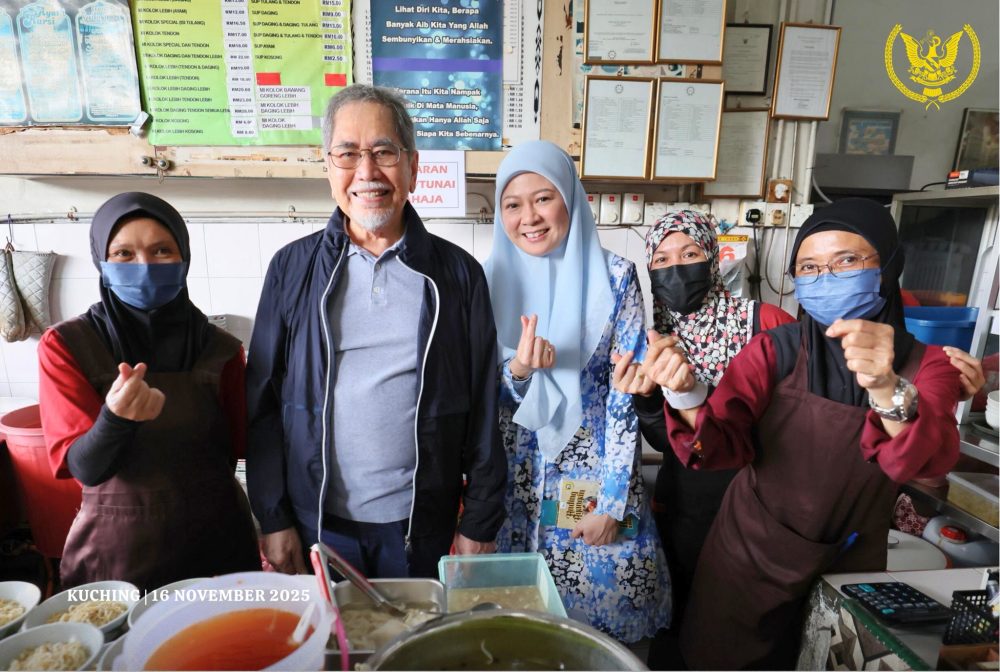 Sebelum pulang, Tun Wan Junaidi dan Toh Puan Fauziah turut meluangkan masa bergambar bersama beberapa pelanggan yang ingin merakam kenangan, menambahkan suasana mesra dalam kunjungan ringkas pagi ini.