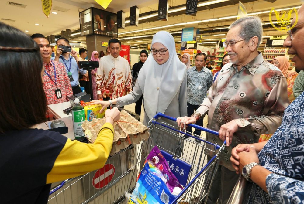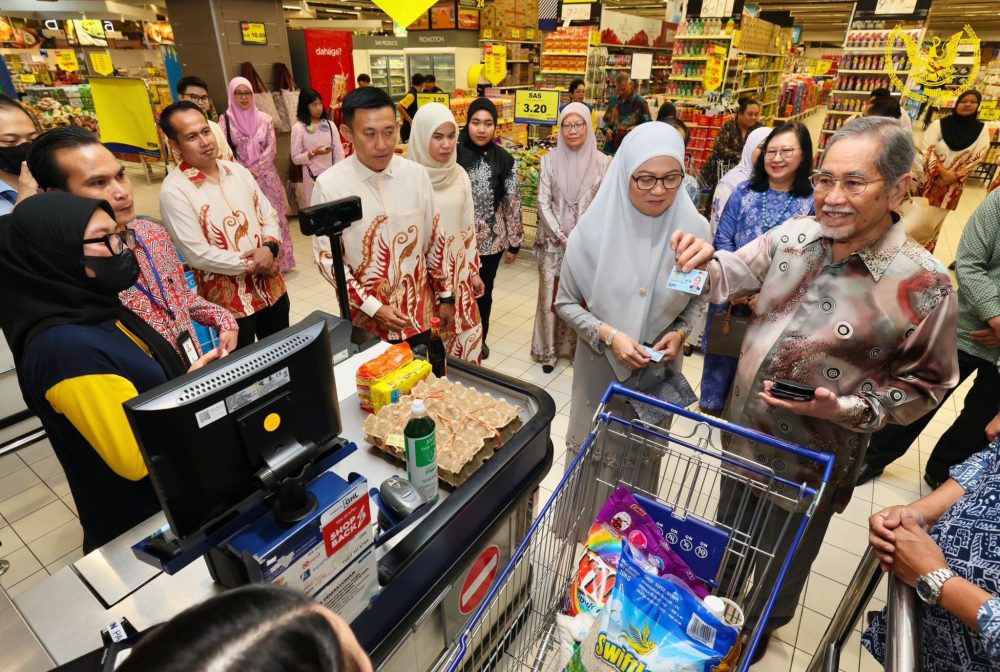 Sejurus tiba, Tun Wan Junaidi dan Toh Puan Fauziah diiringi anaknya Sharifah Fariah dan Sharifah Nong Jasima, menantu Hakeem, serta cucu Athena, telah berbelanja barangan keperluan menggunakan Sumbangan Asas Rahmah (SARA).