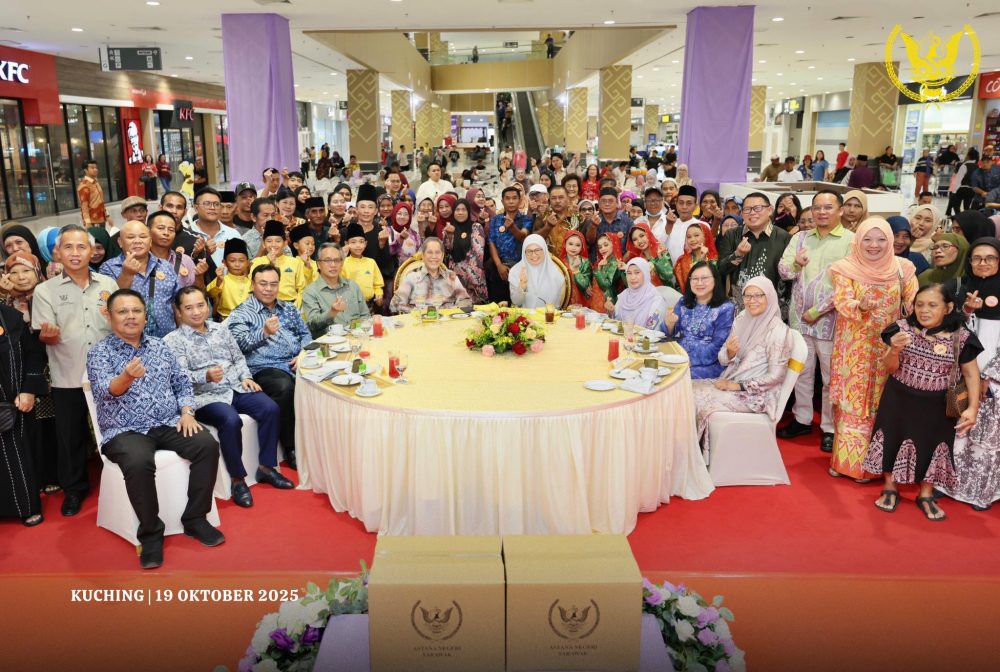 Tun Wan Junaidi dan Toh Puan Fauziah merakamkan penghargaan kepada semua pihak yang terlibat, khususnya Pasar Raya Mydin, JKM Sarawak, serta pegawai-pegawai Astana Negeri atas komitmen dan dedikasi dalam menjayakan majlis ini.
