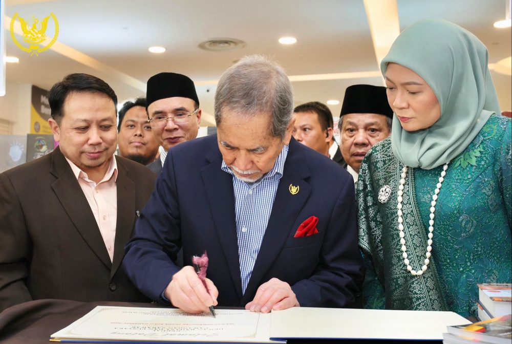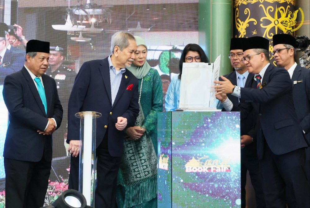 Seterusnya, Tun Wan Junaidi dan Toh Puan Fauziah dijemput menyempurnakan gimik perasmian melalui penandatanganan digital sebelum tayangan montaj khas Pesta Buku ditayangkan.